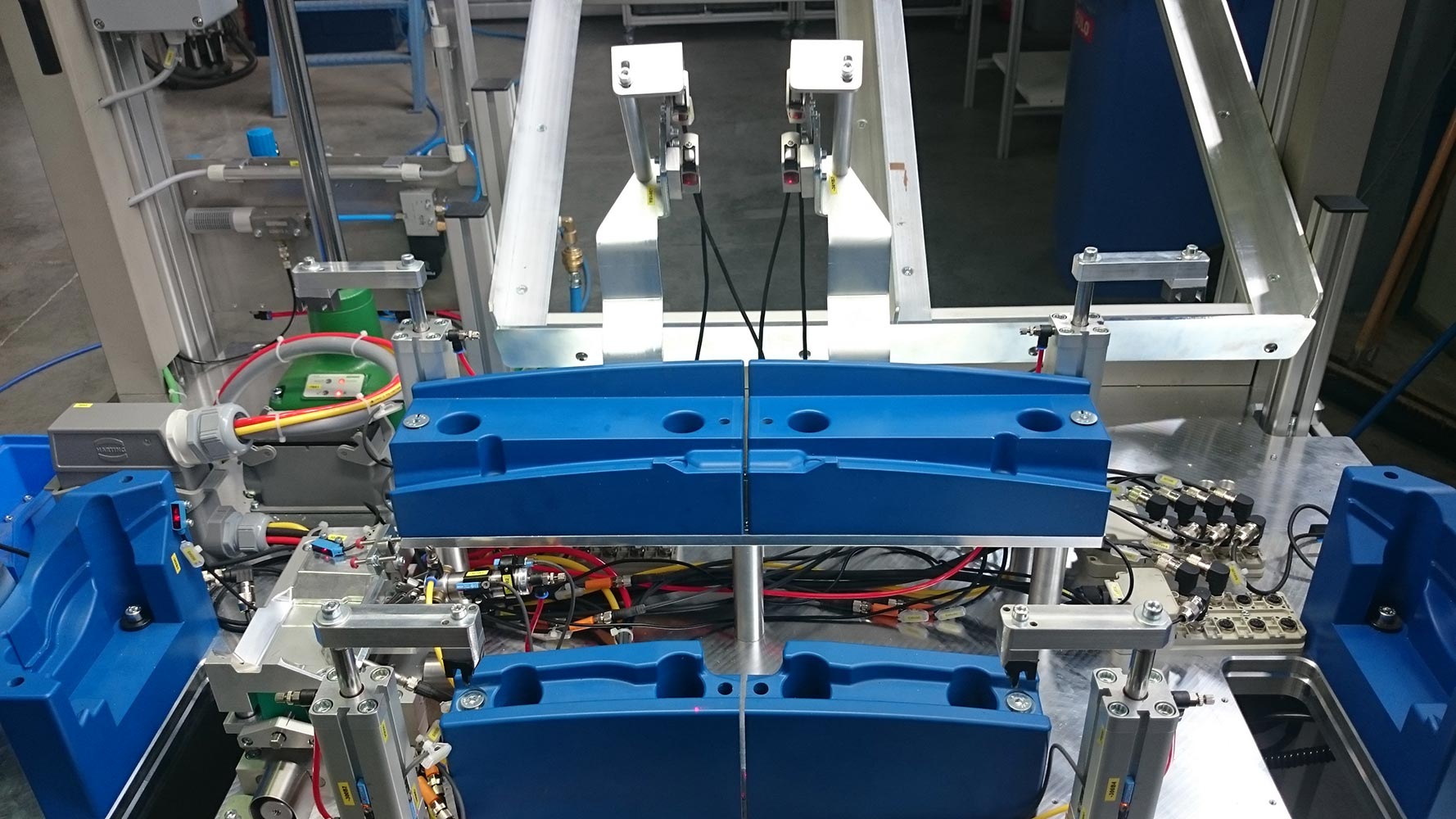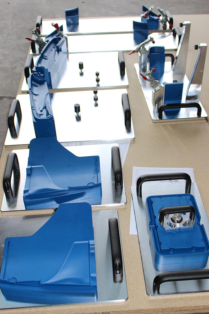Wir bieten neben unseren automatisierten Produkten auch Vorrichtungen für manuelle und teilautomatisierte Prozesse an. Dazu gehören neben Ultraschall-Schweißvorrichtungen und Handarbeitsplätzen zum manuellen Setzen von Schrauben und Klipsen auch einfache Vorrichtungen zum Stanzen sowie Handarbeitstische mit Poka-Yoke-Funktionen.